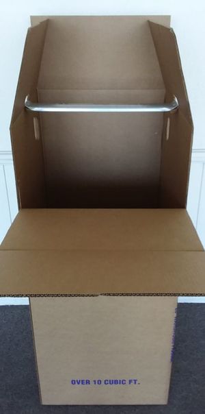 Place hanging clothes inside of the wardrobe boxes. There is a bar in the middle for hangers to hang off of.